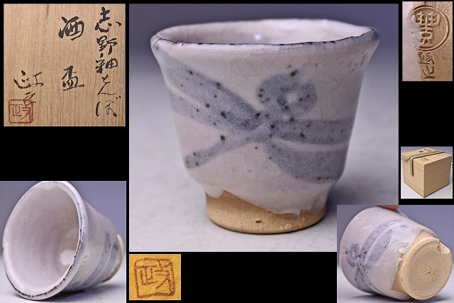 > 今井政之 ★ 志野釉とんぼぐい呑 ★ 共箱 共布 ★ 良い重量感 ★ 師:楠部彌弌 ★ 酒器 ★