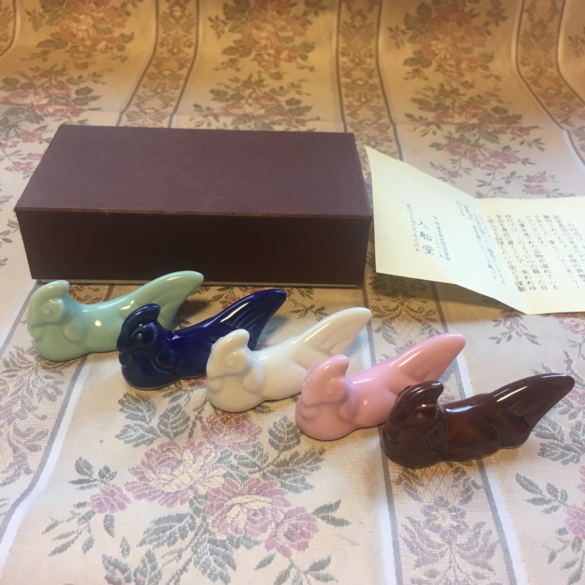 - 新品★京焼 入船堂 箸置き 鶏 色変わり 5個セット 長谷川治 日展入選 陶器製