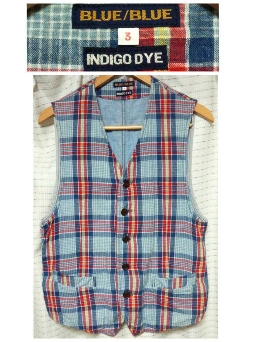 > ブルーブルーBLUEBLUEコットンリネンベストVESTインディゴ染めINDIGO DYE日本製HRM 3オクラL麻M OKURAガイジンメイドGAIJIN MADEチェック