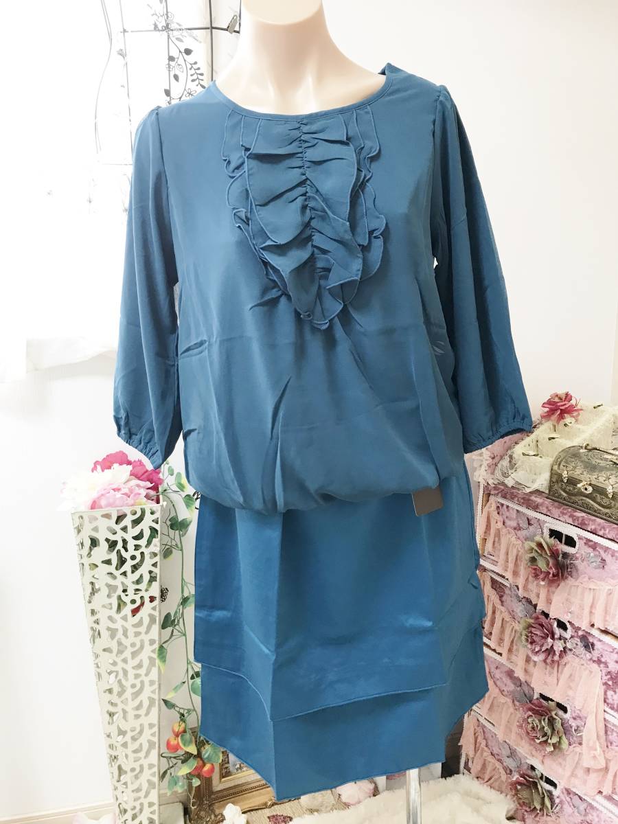 - レディスMサイズ:ゆったりシフォンブラウス&光沢スカート 上下セット:エメラルドグリーン