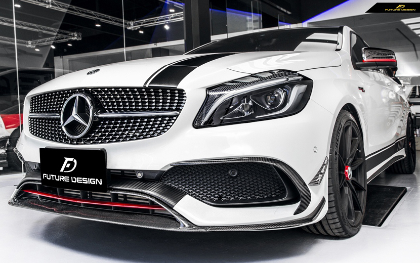 - BENZ メルセデス・ベンツ A-Class W176 後期車 フロントバンパー用B26 リップスポイラー カナード 本物Drycarbon ドライカーボン A180 A200