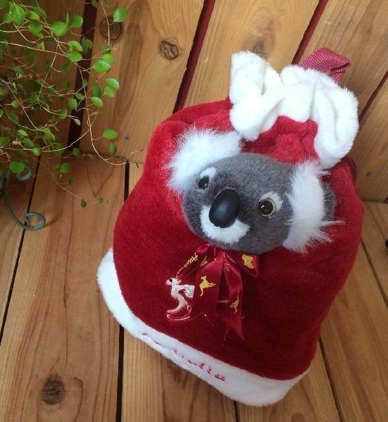 > ≫かわいいコアラのぬいぐるみ付巾着リュック*子供キッズ鞄カバンかばん*オーストラリア土産*こあらアニマル動物*赤レッド×白ホワイト