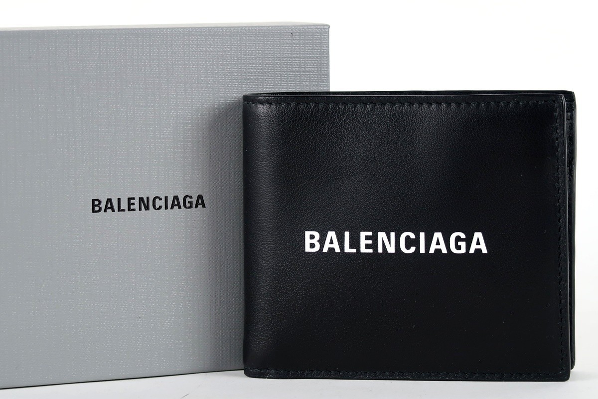> 【新品・未使用】BALENCIAGA バレンシアガ 二つ折り財布 ブラック ロゴ レザー ブランドウォレット【GZ36】