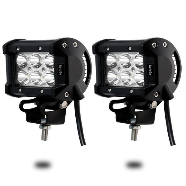 > AutoGo LEDワークライト 作業灯 18W 6LED 6連 12V-24V対応 角型 狭角タイプ30度 防水・防塵・耐衝撃 車外灯 汎用作業灯【2個セット】