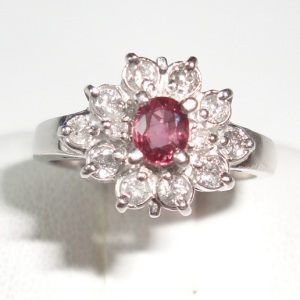 - 送料無料 pt900ルビー・極小ダイヤ12石取り巻きリング サイズ9 used 質屋出品