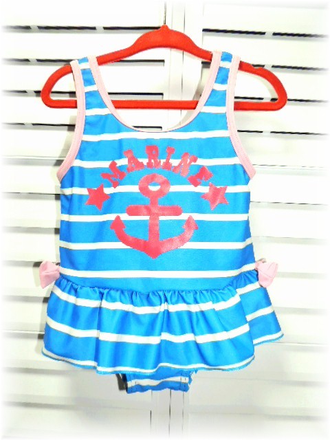 - マリンスタイル ワンピース水着 ベビー90cm ブルー×ホワイトボーダー