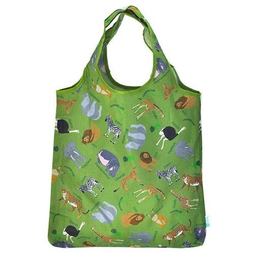 - サファリのアニマルいっぱいエコバッグ(ショッピングバッグ)《ゾウ・キリン・シマウマ・ライオンetc柄》