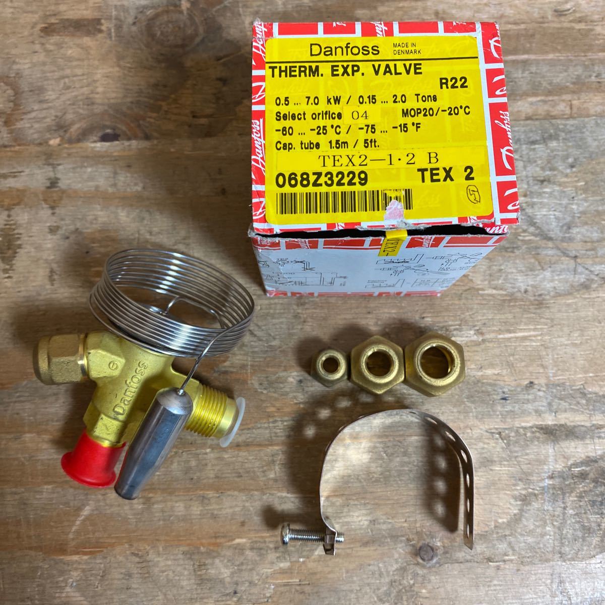 > 未使用品☆Danfoss ダンフォス温度膨張弁 TEX2-1.2B R22 オリフィス 04 冷媒-60℃~-25℃ 1/4x1/2インチ フレアナット付き☆送料520☆レ+⑤