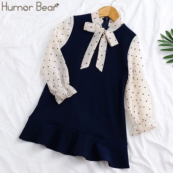 - 送料無料! 新品未使用 女の子ワンピース 4~5歳 110cm ガールズ キッズ ネイビー リボン 学園風 レース Aライン ドット柄
