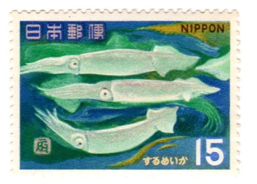 > 昭和42年1967「魚介シリーズ/スルメイカ」15円切手・未使用【送料無料】「熊五郎の切手」00800104