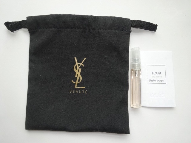 > ● YSL Yves Saint Laurent Parfums 新作 BLOUSE ブラウス 試供品 香水 バラ ポーチ付き 巾着 香水の紙 新品 イヴサンローラン スプレー