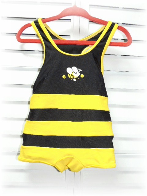 - Elfin Doll Kids グレコ水着 90cm ブラック×イエローボーダー