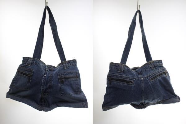 - デニム生地ジーンズ型手作り トートバッグ 【b-2】