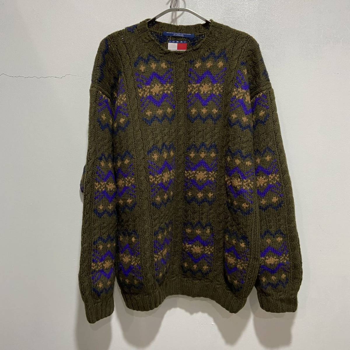 > ☆送料無料☆ Tommy hilfiger☆総柄セーター☆L☆ケーブル編み☆ハンドニット☆