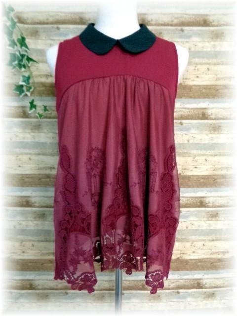 - axes femme ノースリーブ レース切替 POカットソー M ワイン
