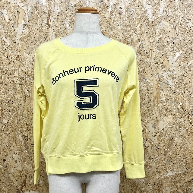 > 【日本製】 VICKY ビッキー 2 レディース Tシャツ 袖口と裾にリブ 裾スリット 英数字デザイン ラグラン カットソー 長袖 綿100% 杢イエロー