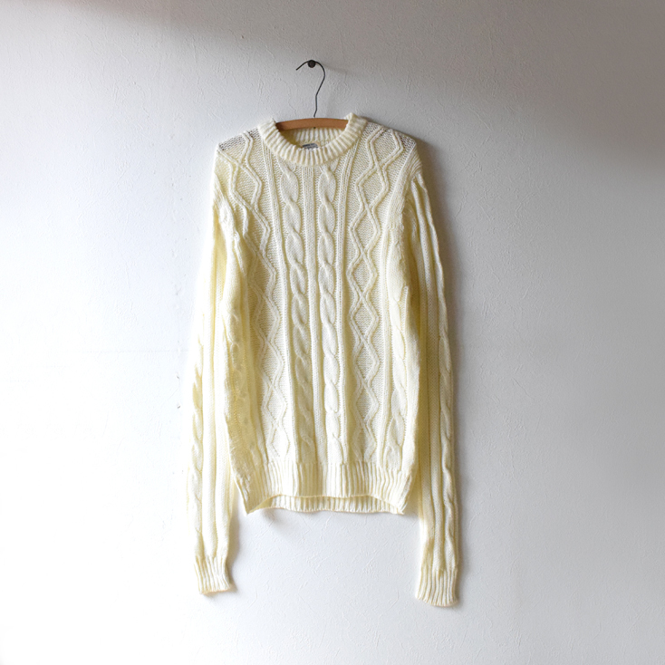 > 【送料無料】80s ヴィンテージ アクリルニット セーター ケーブル模様 ホワイト YOUNGBLOODS メンズL CH0180