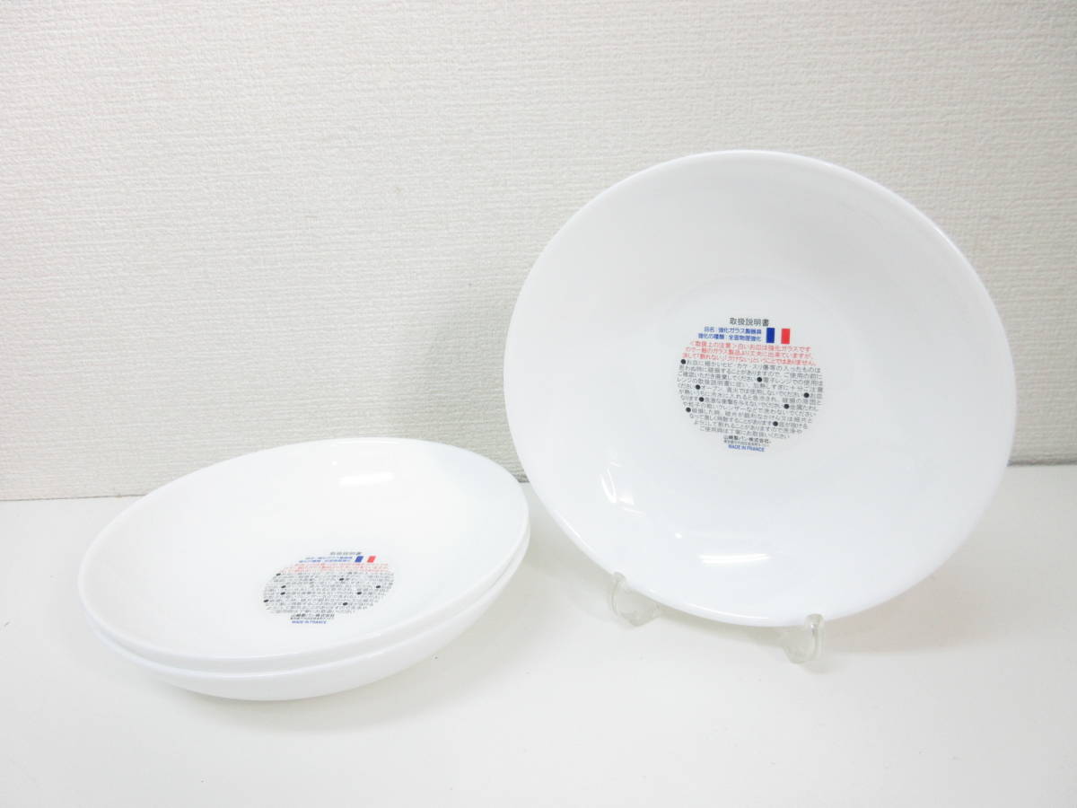 - ▲山崎製パン 強化ガラス製プレート お皿 中皿 中鉢 フランス製 白 3枚セット 未使用品 管理2011 Z-3