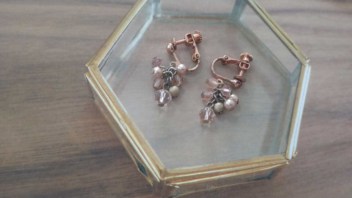 - □揺れるスモーキーピンク・ビーズのイヤリング□