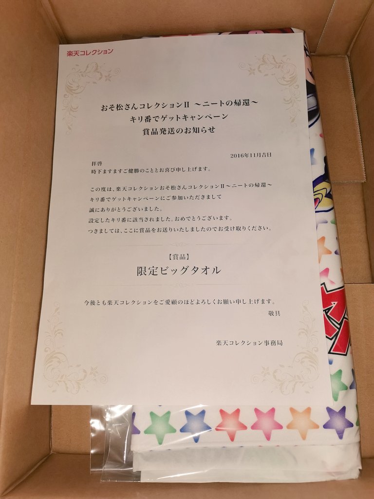 - 賞品 懸賞 当選品 おそ松さんコレクションⅡ ニートの帰還 キリ番でゲットキャンペーン 限定ビッグタオル 一松 カラ松等