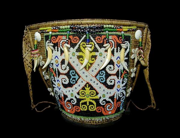 - インドネシア・カリマンタン島ロタン編みトンボ玉背負子(B)