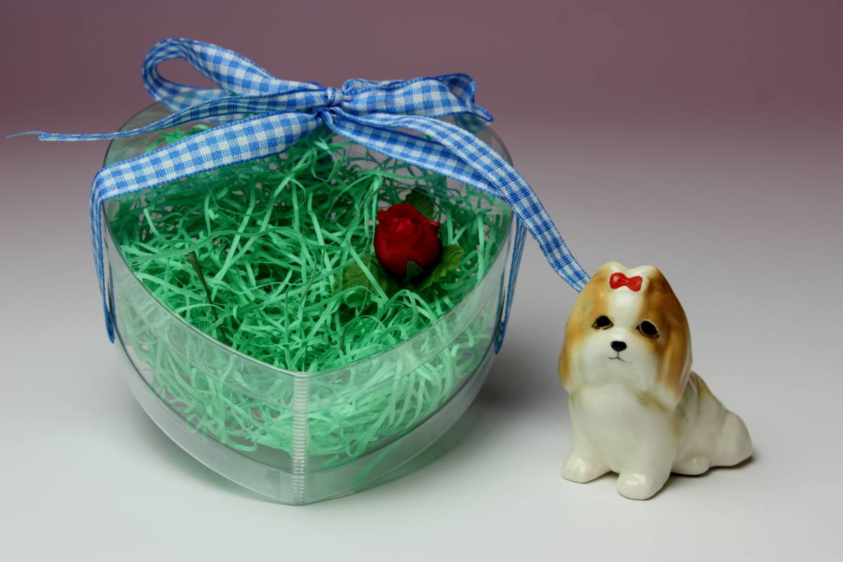> 陶器 ミニチュアドッグ シーズー ゴールド&ホワイト 茶白 パーティカラー 犬フィギュア 新品 日本製 瀬戸物 オーナメント 小型犬