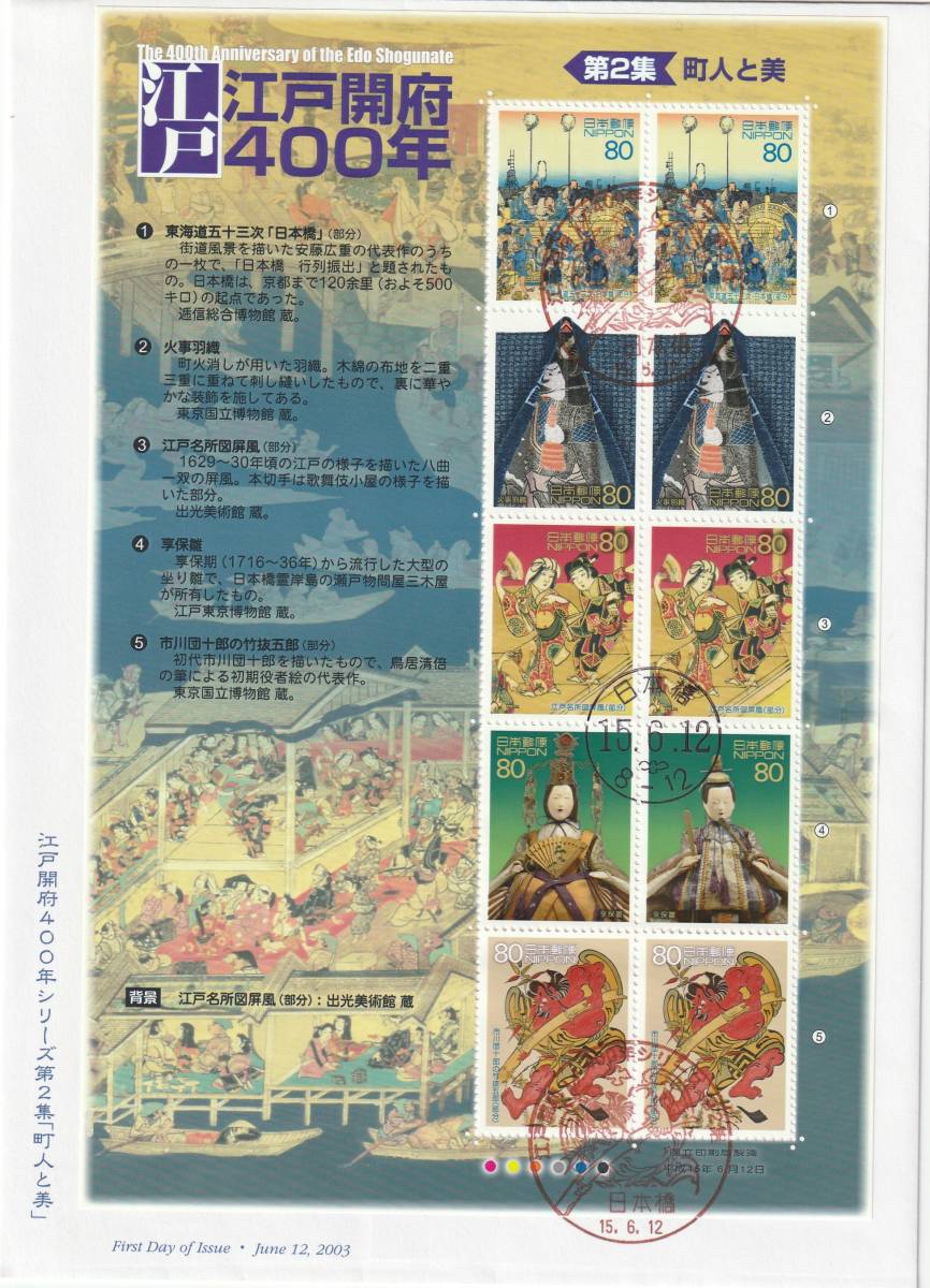 - FDC 2003年 江戸開府400年 80円シート貼 2集 JPA