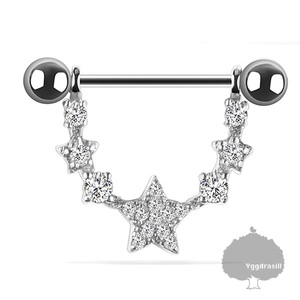 - YGG★新品 スター 星型 ラインストーン ストレートバーベル ピアス 14G 14ゲージ シルバー 1個 片耳 シールドピアス ボディピアス