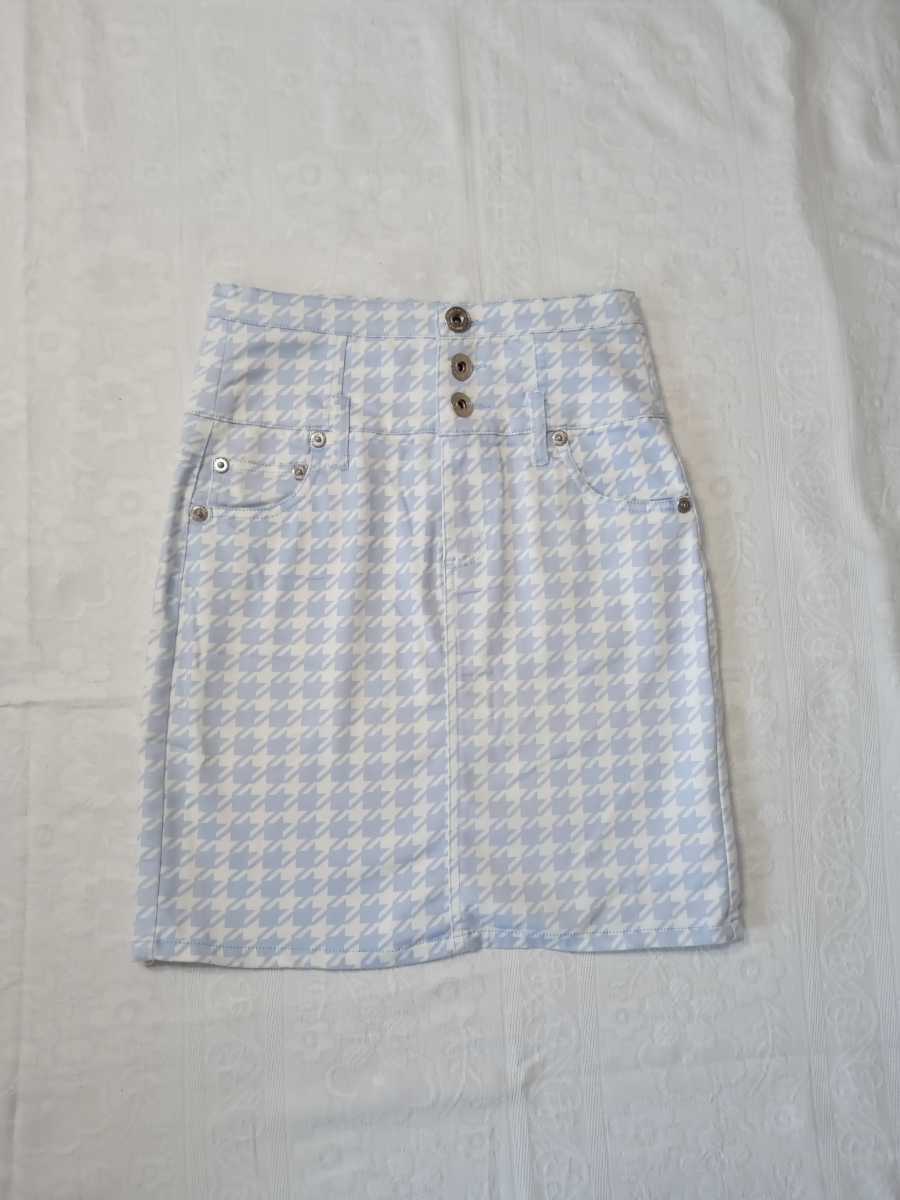 - 千鳥格子 ハイウエスト デニムスカート W67