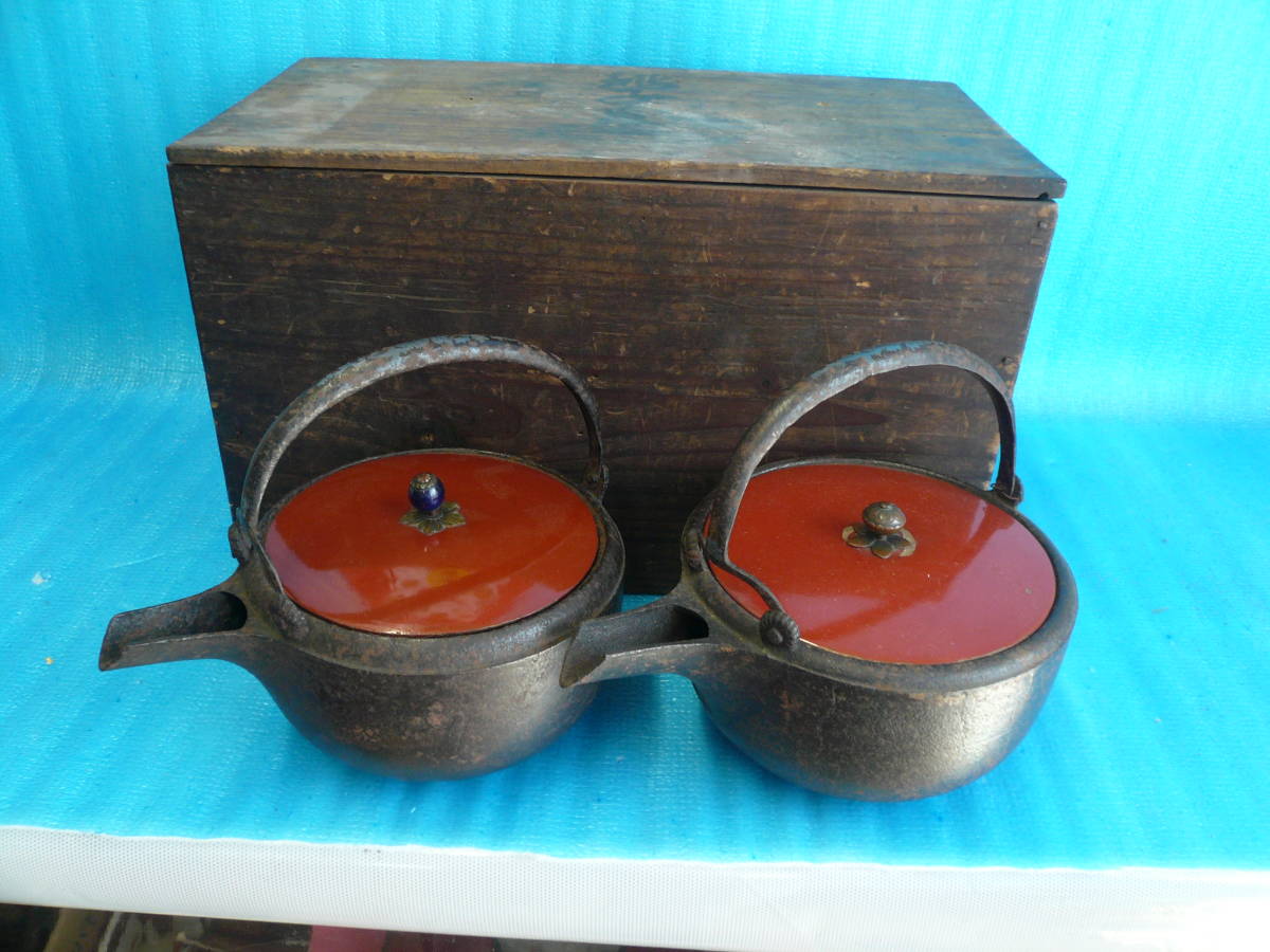 - ●時代物銚子 2個組 塗蓋 木箱入り #当時物 鉄瓶 ちろり