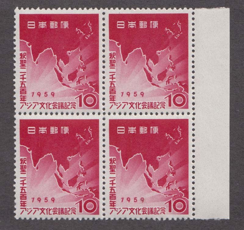 > 田型☆余白付き◆記念切手★1959年☆アジア文化会議 【釈聖二千五百年アジア文化会議記念】10円×4枚【未使用】