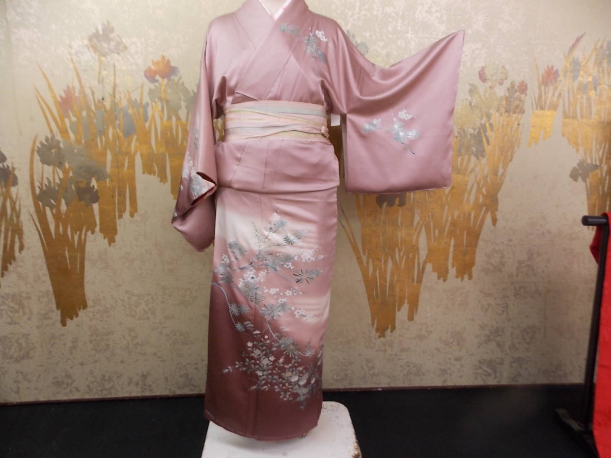 - きもの今昔2393 付け下げ訪問着色留袖 正絹綸子地 ブルー箔ピース加工の 躾け糸付き未使用