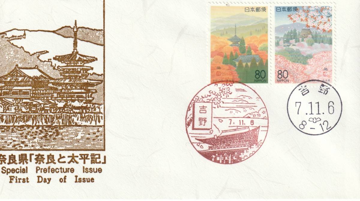 - FDC 1995年 ふるさと切手 奈良県 2貼2消し 鳴海