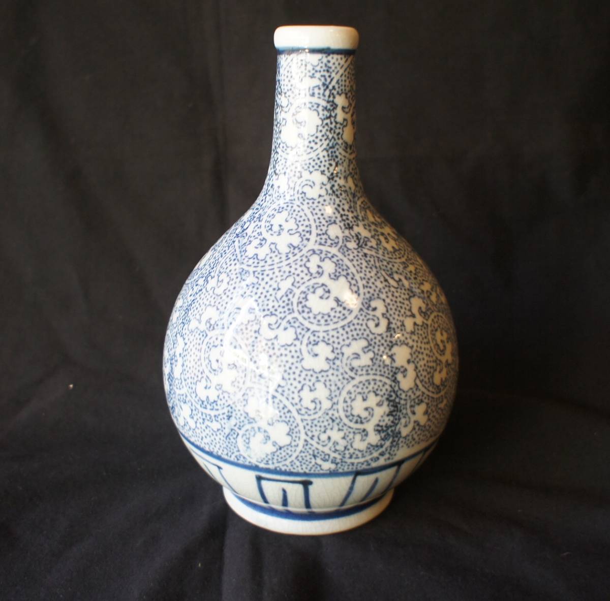 - 安い!雰囲気ある印判手、魚子地唐草の徳利 インテリアに、花瓶に 割れ、カゲ無し 迅速発送