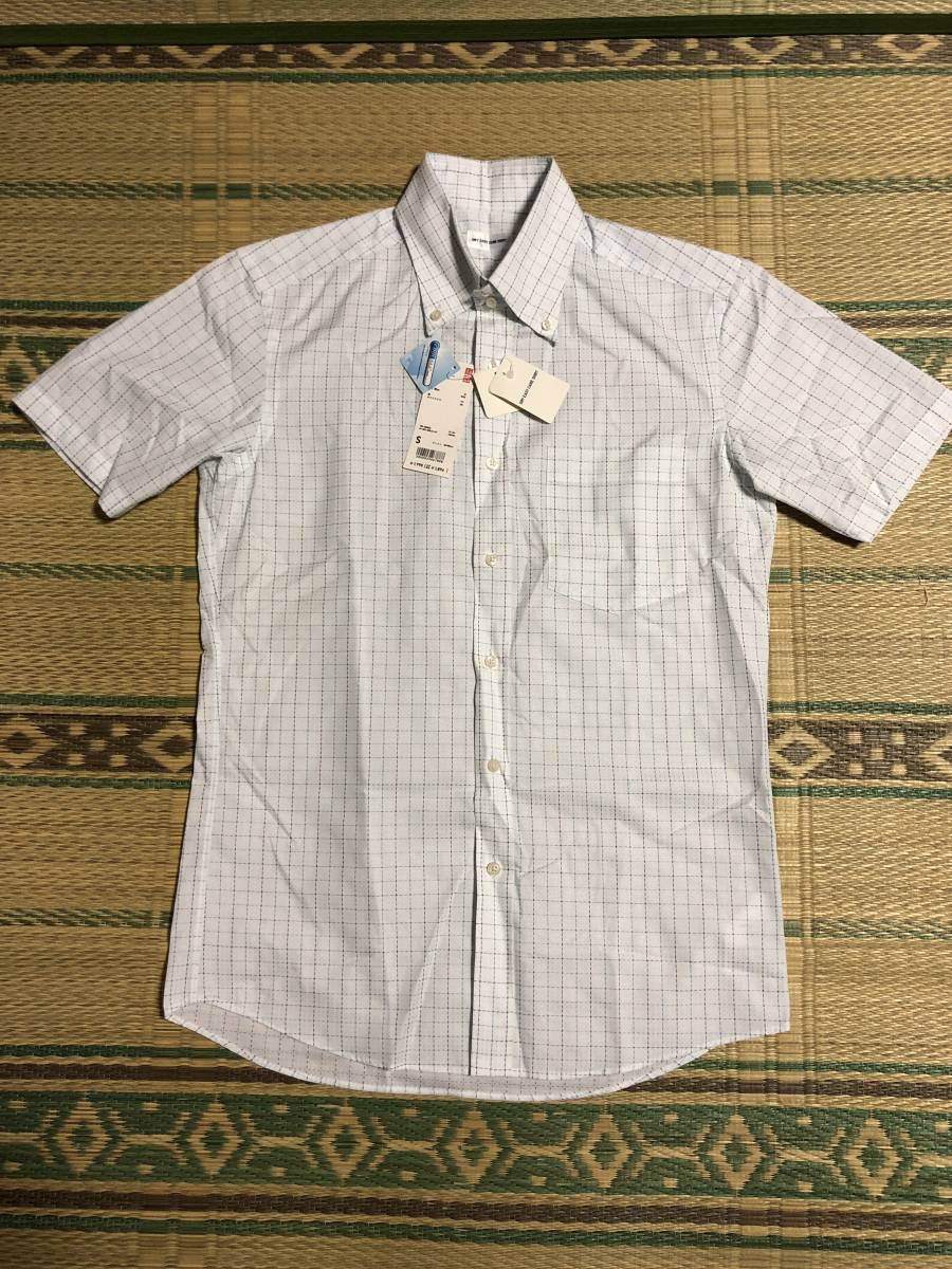 - ユニクロ UNIQLO ドライイージーケアチェックシャツ 半袖 64Blue S 新品未使用 1990円 人気 デザイン 定番 メンズ カジュアル ファッション