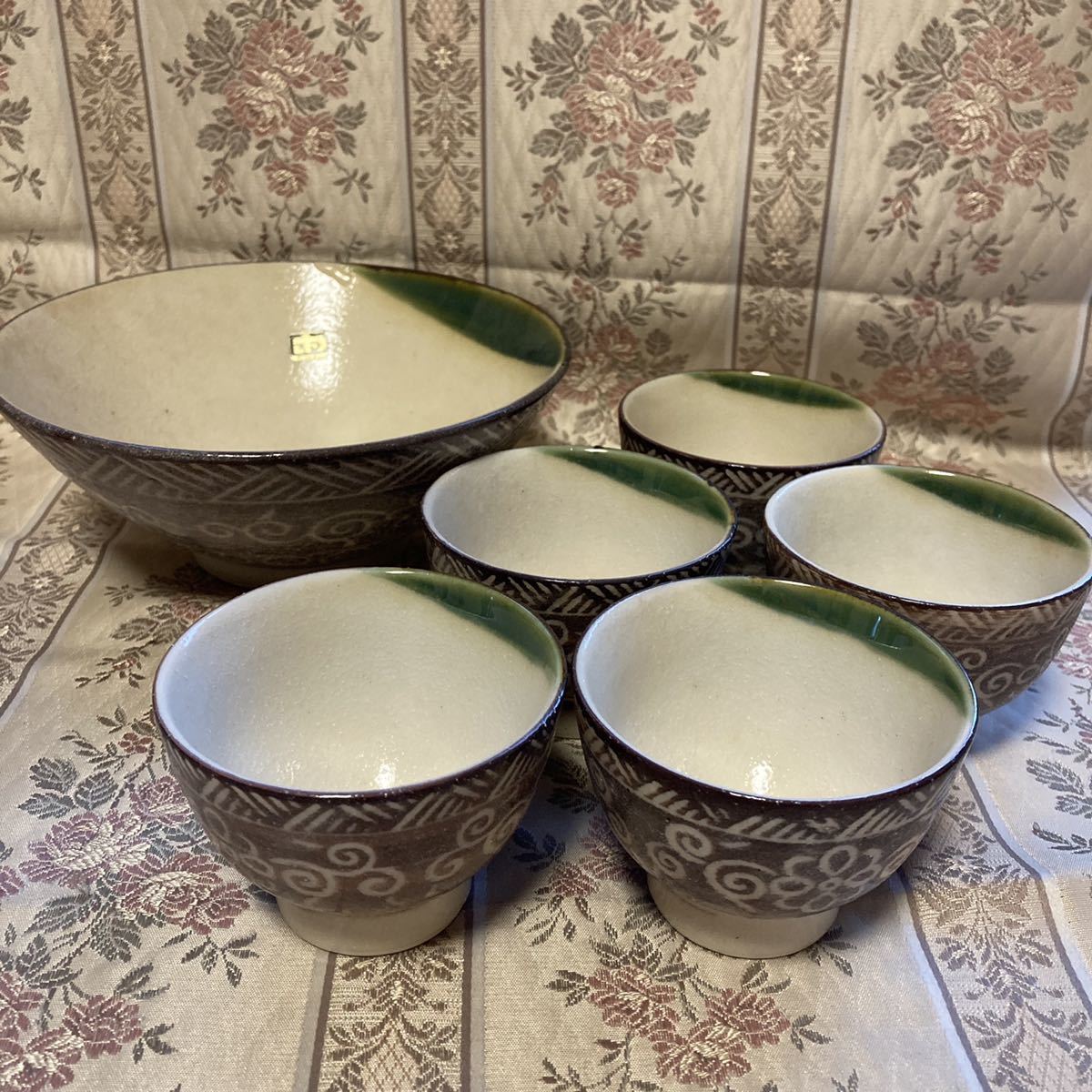 - 新品★志野焼 憩いセット 湯呑み 5客&丼 美濃焼