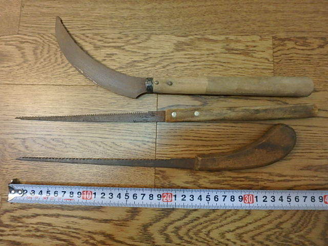 - 80s105y 古いのこぎり 錆あり レトロ 鋸 ノコギリ鎌 引き回し鋸 3本 古道具 大工道具 当時物 ジャンク(北海道・沖縄・離島は発送不可)