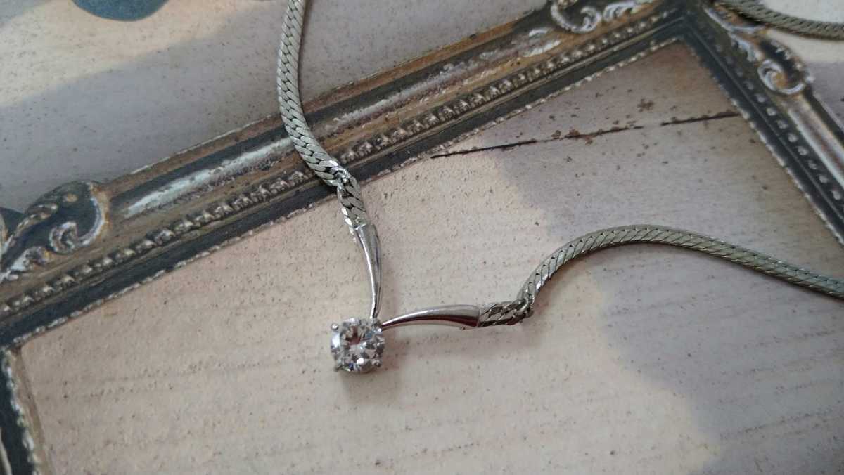 - □訳ありヾ□シルバーカラー×1粒ラインストーン・スネークチェーンチョーカー□