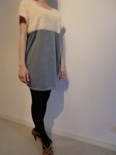 - 【KCM】yng-49-L★新品未使用★【Ailes】フレンチスリーブ 半袖 チュニック 切替 L ライトグレー レディース