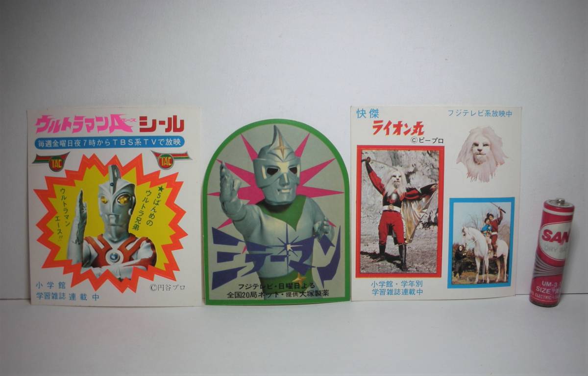 - 特撮 ヒーロー 新番組 宣伝 シール ウルトラマンA ミラーマン 快傑ライオン丸 宣伝用 シール 3点