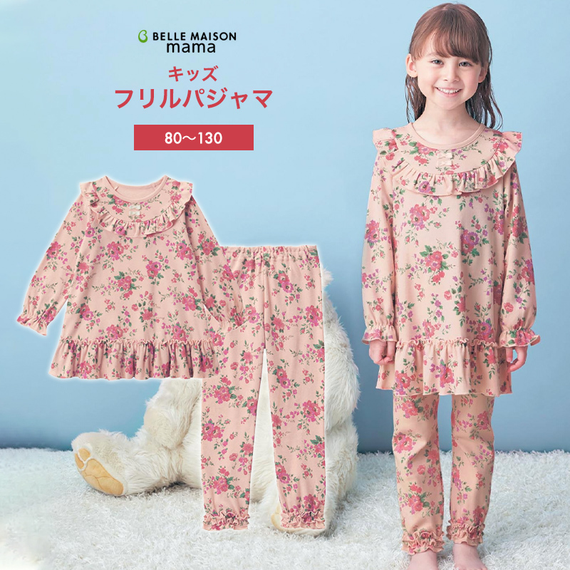 > 【80サイズ】GITA 長袖 フリル付き ベビー パジャマ ピンク フリル リボン 新品 送料込み