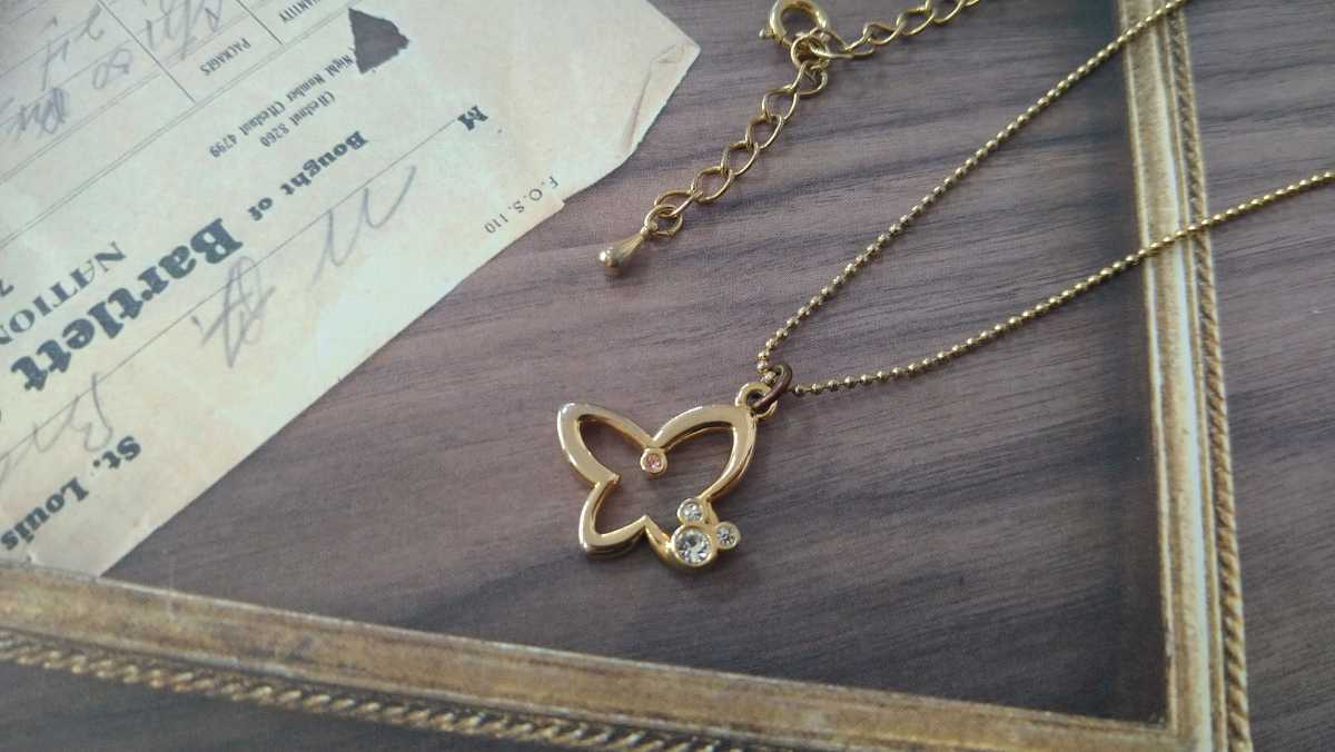 - □オープンバタフライ×ゴールドカラー&ミッキーマウスモチーフ・ラインストーン・ネックレス□