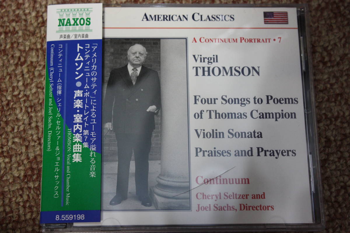 > トムソン:合成的ワルツ/トーマス・キャンピオンの詩への4つの歌曲/バイオリンソナタ/マリアン・ムーアによる2題/賞賛と祈り/ザックス/naxos