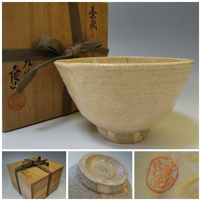 - 【M-46】九谷 三代目 上出喜山 茶碗 共箱付 茶道具