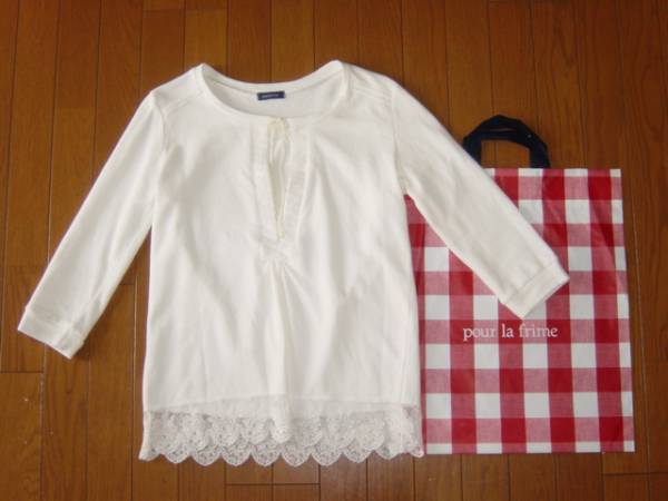 - ★美品プーラフリーム★花レース リボン薄手トレーナー白★VIS