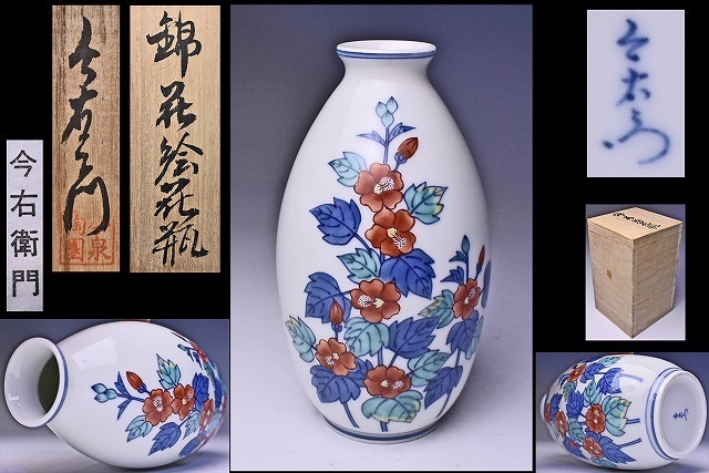 > 今泉今右衛門 13代 ★ 錦 花絵 花瓶 ★ 共箱 栞 ★ 人間国宝 ★ 鍋島焼 ★ 雅な絵付の逸品 ★