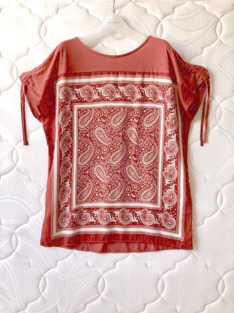 - 新品¥8778★LHELBIEレルビエ★オーバーTシャツ・チュニック★ペイズリー柄スカーフ赤