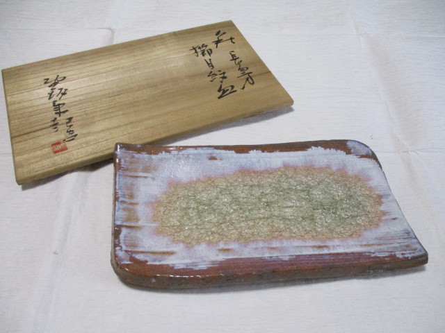 - 萩焼 野坂康起 萩長四方 未使用 共箱 (2021227)