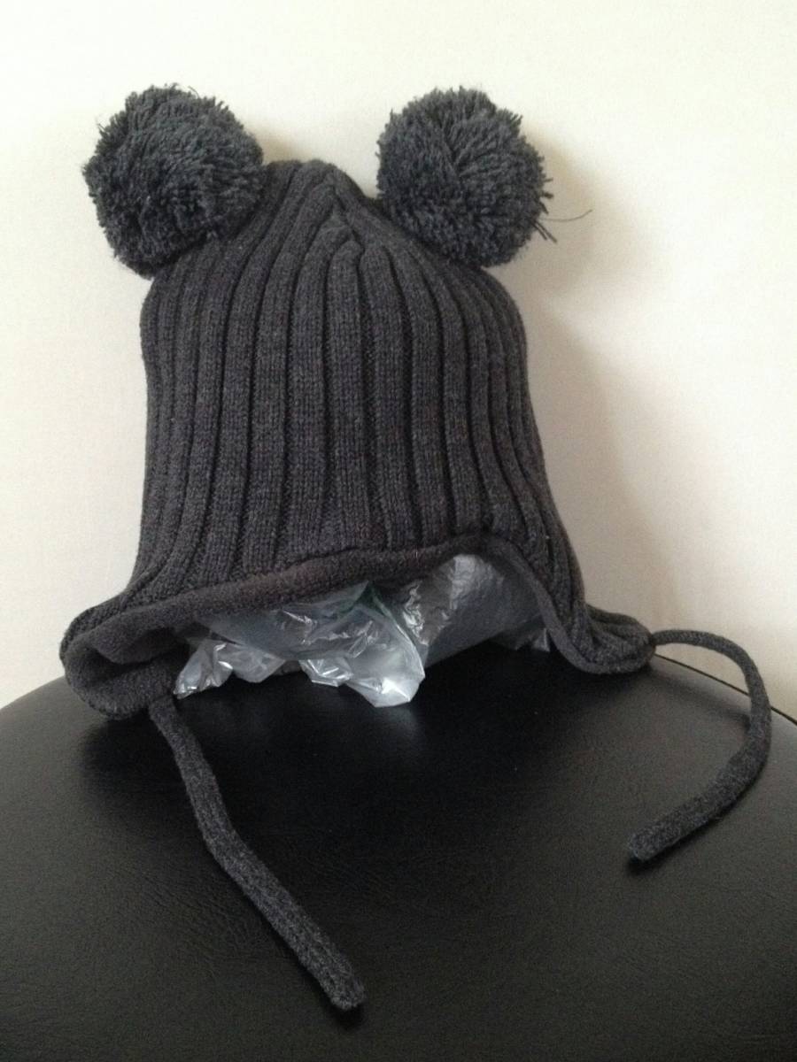 - ◆チャコールグレー◆可愛くて暖かい内側フリースの耳当て付きニット帽◆ベビーサイズ◆9350