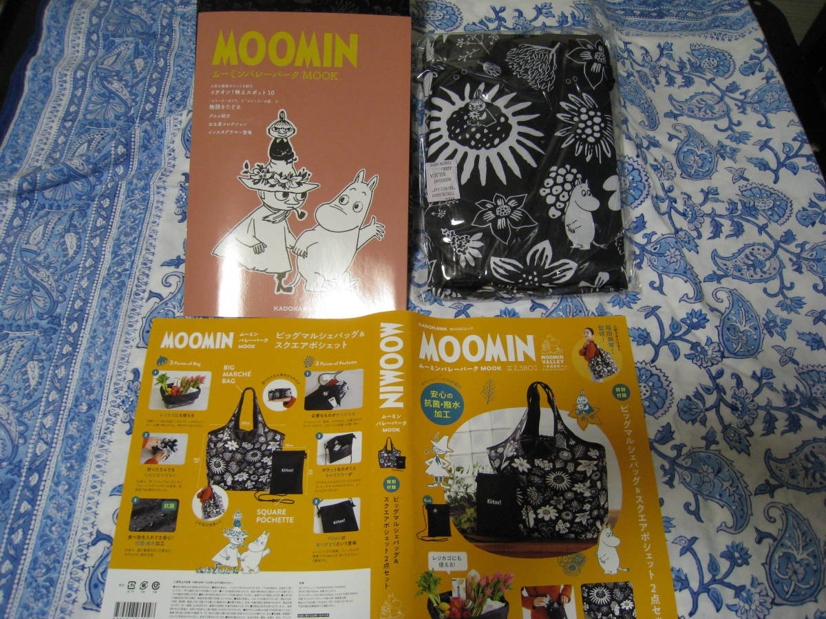 - ☆ムーミン・ビッグマルシェバッグ&スクエアポシェット2点セット(ブラックに花・ムーミン柄)冊子☆未使用